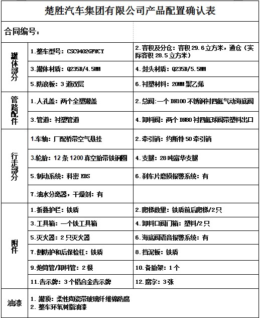 楚勝汽車集團(tuán)有限公司產(chǎn)品配置確認(rèn)表